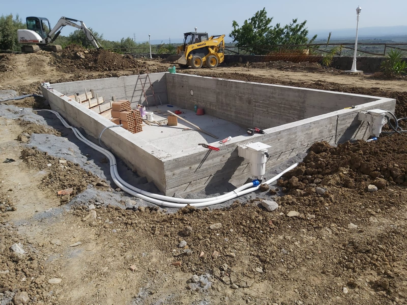 Le piscine in calcestruzzo armato consentono di realizzare qualsiasi forma e dimensione; possono essere facilmente personalizzate; presentano caratteristiche di solidità e di durata indiscutibili.