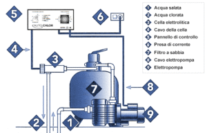Questo sistema autonomo utilizza un processo di purificazione naturale per generare cloro puro. Quest'ultimo, infatti, viene generato a partire da semplice sale. Come semplice sale? Sì, da una concentrazione molto bassa di sale comune in pastiglie, tramite un processo elettrolitico è possibile generare cloro libero, senza però l'odore caratteristico di quest'ultimo. Il cloro generato uccide i batteri e le alghe e, grazie all'azione dei raggi UV, si riconverte nuovamente in sale e il ciclo ricomincia.