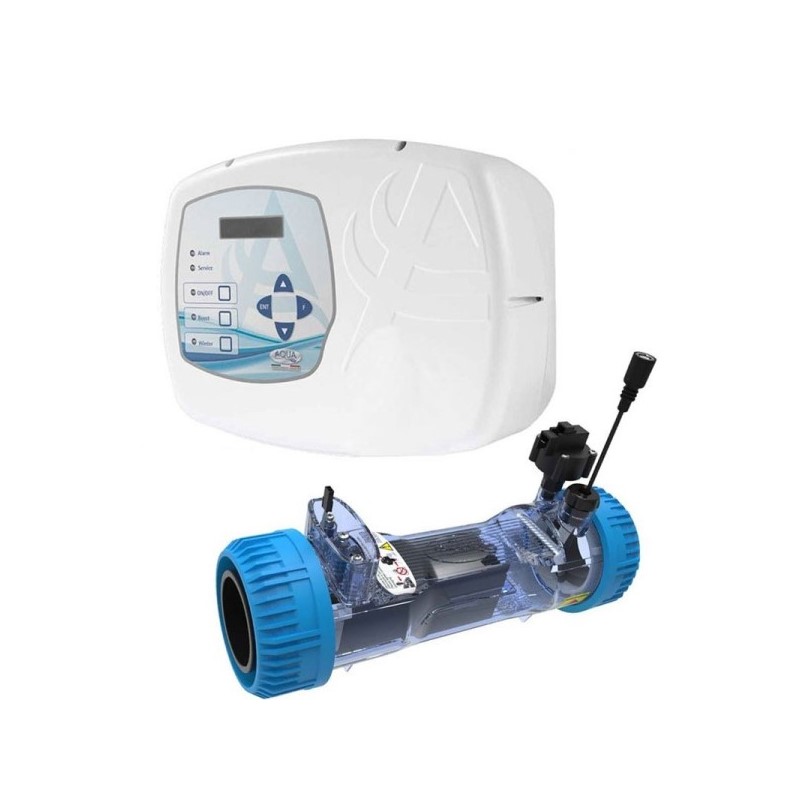 Elettrocloratore Aqua Salt Standard genera cloro tramite il sale per piscine fino a 200 mc d’acqua.