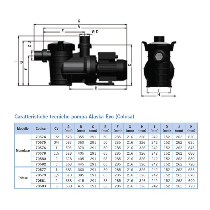 Pompa di filtrazione Alaska Evo (Colusa) Astralpool 3/4 CV monofase