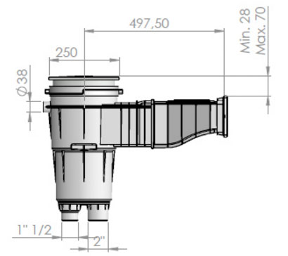 Attacco inferiore di aspirazione filettato interno 1 1/2" ed esterno 2".