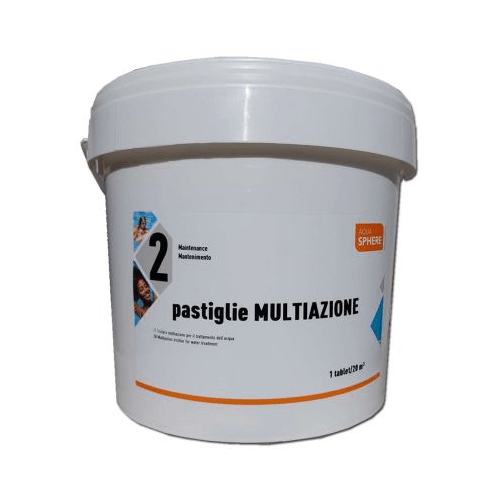 Prodotto chimico in pastiglie da 200 gr che garantisce con una sola applicazione nell’acqua della piscina, di eliminare igienizzare, di evitare lo sviluppo delle alghe e di mantenere l’acqua trasparente e cristallina.